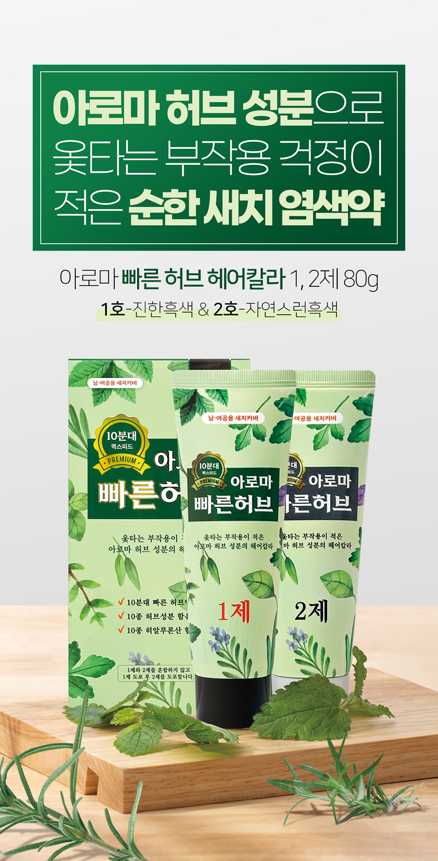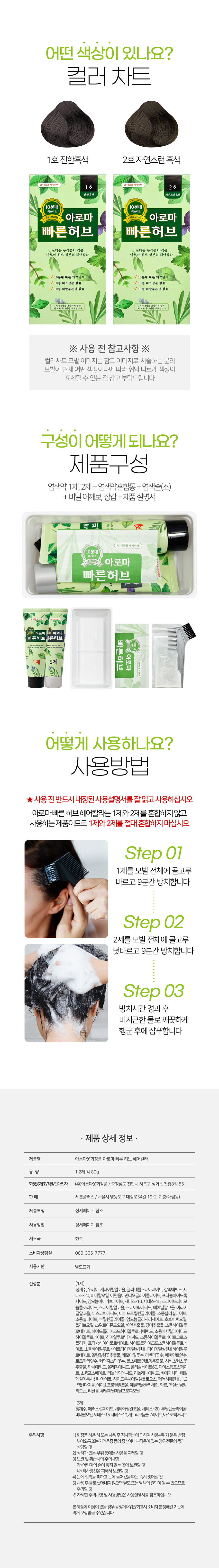 [2378] [아름다운화장품] 아로마 빠른 허브 헤어칼라 1,2제 80g